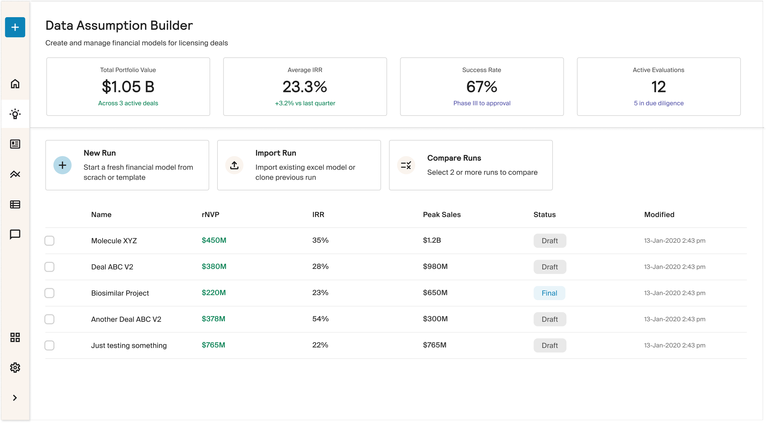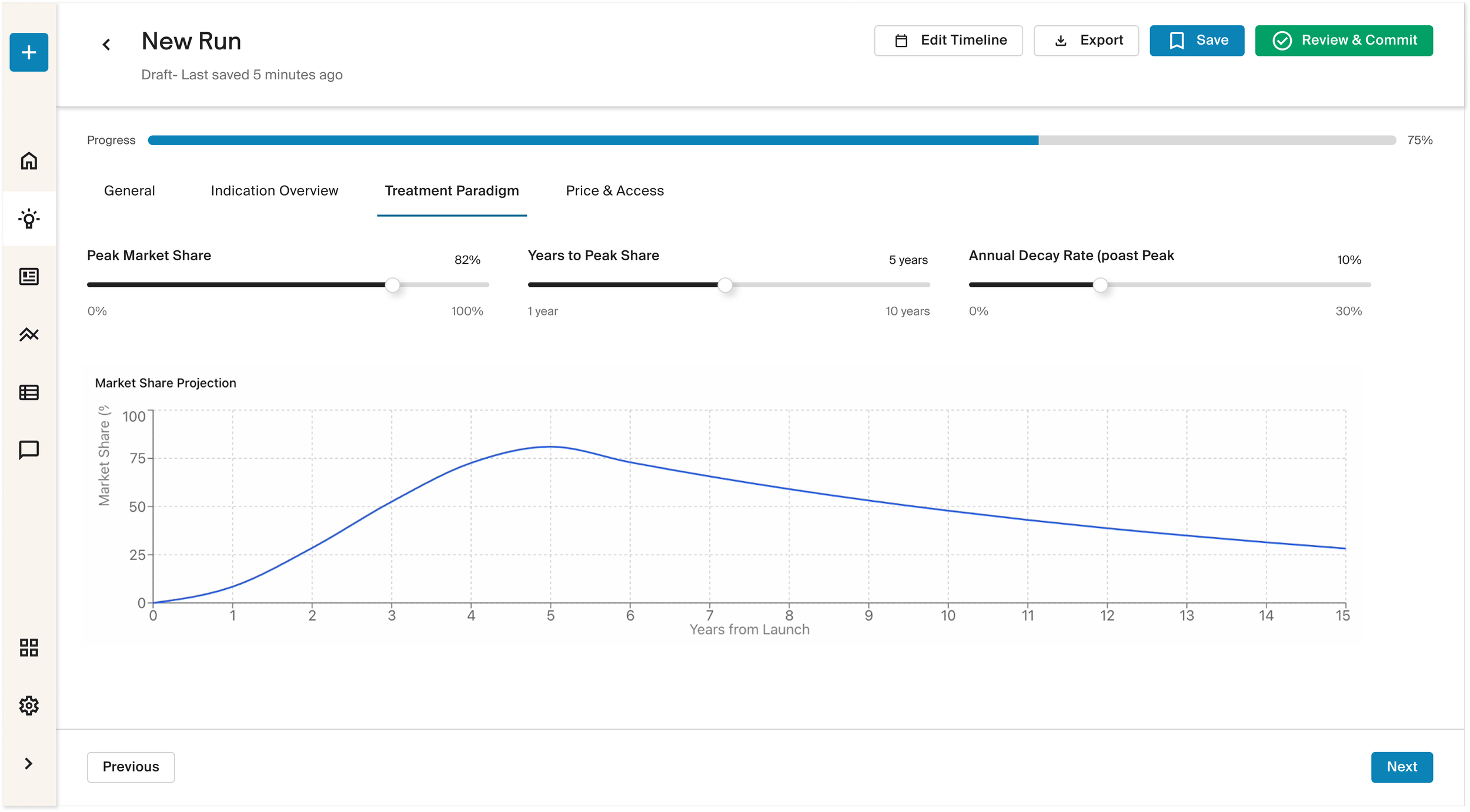 Folks in pharma are always simulating different aspects of the development process to try to understand how an asset can be developed in real life. We wanted to help them see this, so they can jump into the editing, removing the initial blocker of the creation layer.