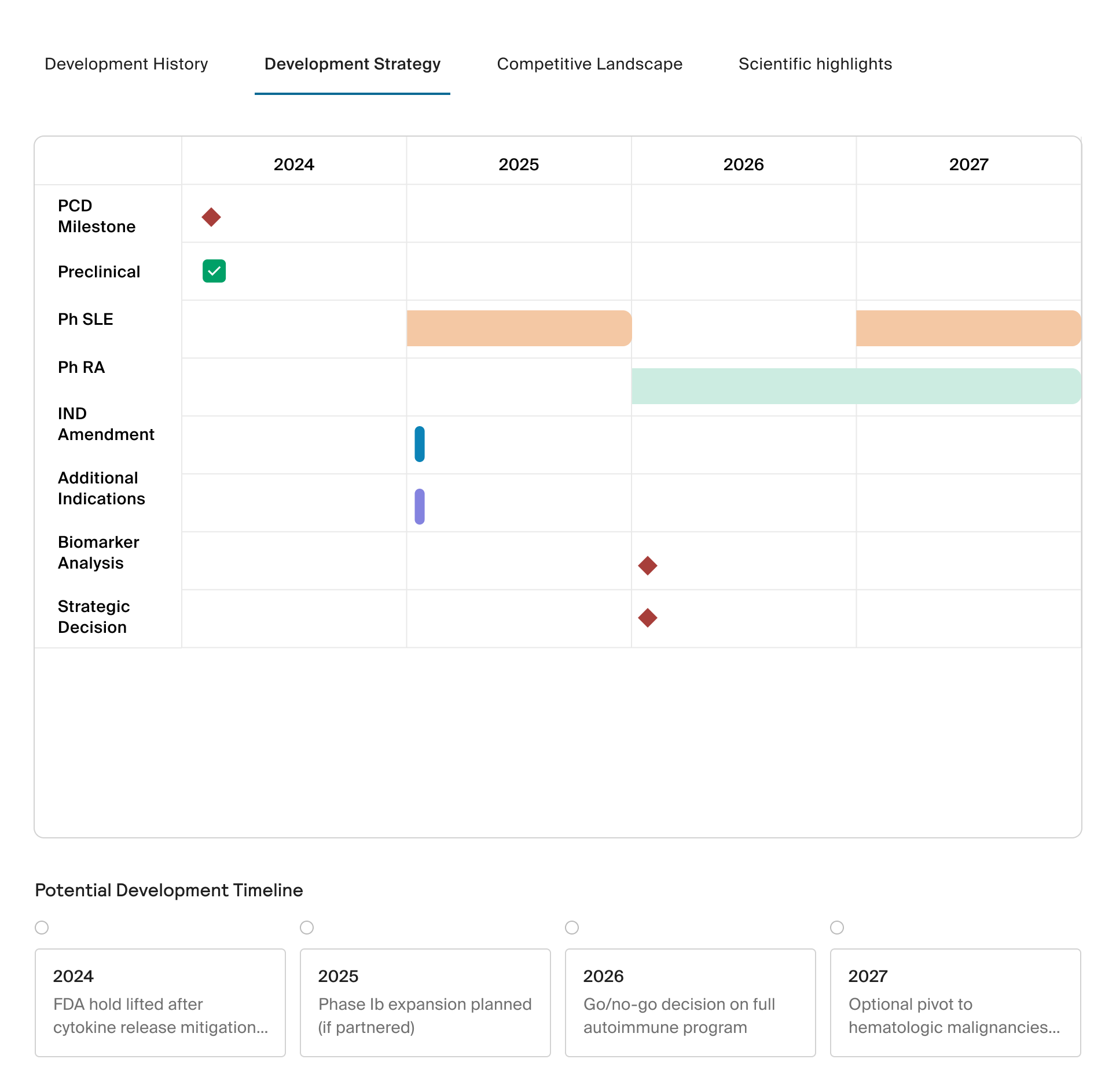 To make evaluation actionable, I created mental models that mapped different ways of combining criteria (e.g., Indication × Modality, Indication × Target). These models helped surface hidden opportunities and reframe how the team could think about prioritization.