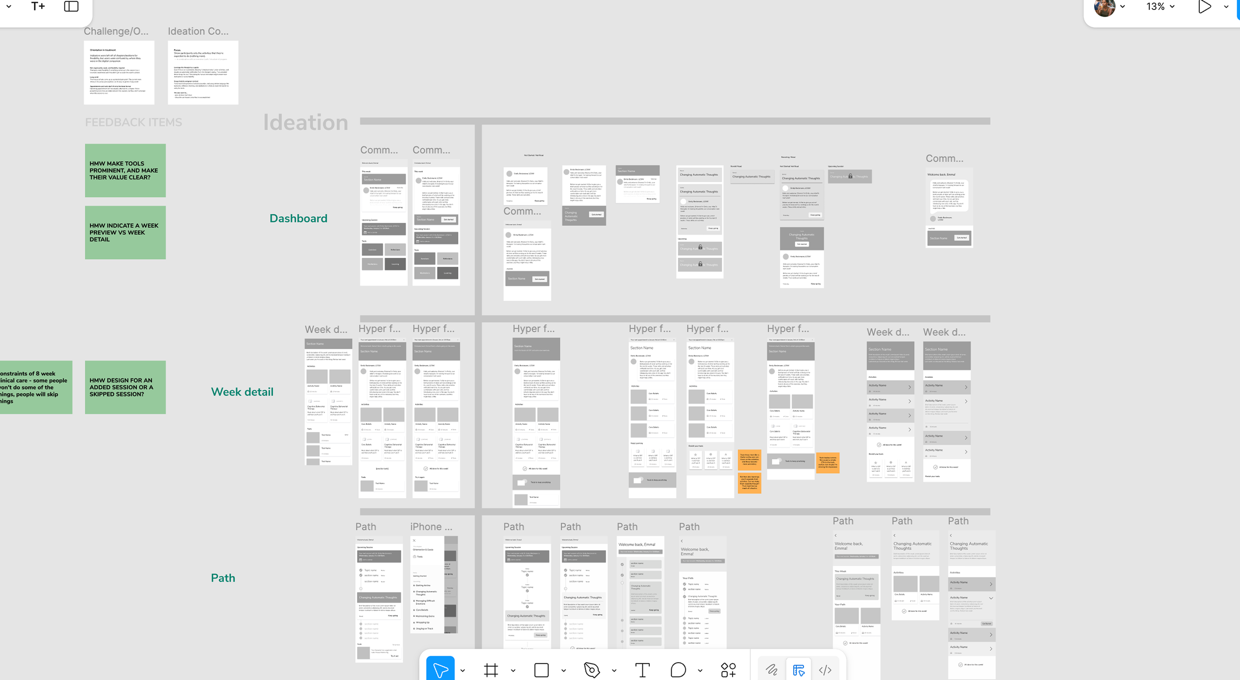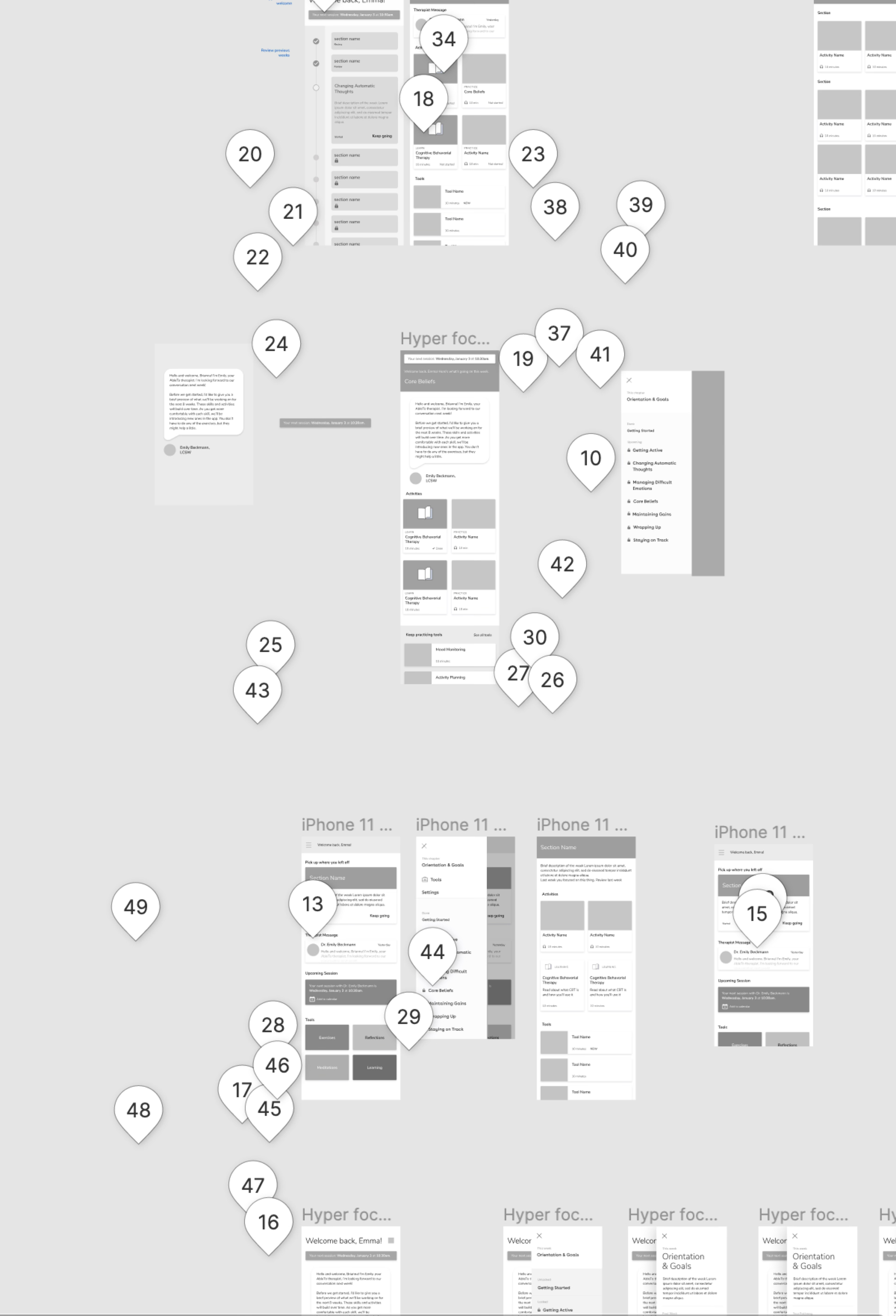 We began by grounding the work in context. This included evaluating industry best practices for digital therapy products, auditing the existing information architecture, and identifying gaps across core workflows. In parallel, we recruited patients and therapists to understand where the product was falling short and which assumptions needed to be challenged.